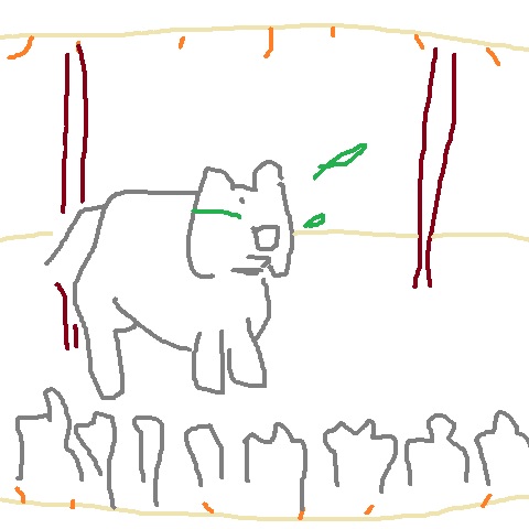 Kunst - 'Da en elefant ved sirkus spyttet noe midt i øye på meg ca 1990 - Elefantene skylder meg kanskje en tjeneste; da vil jeg i tilfelle valgt å være stor':